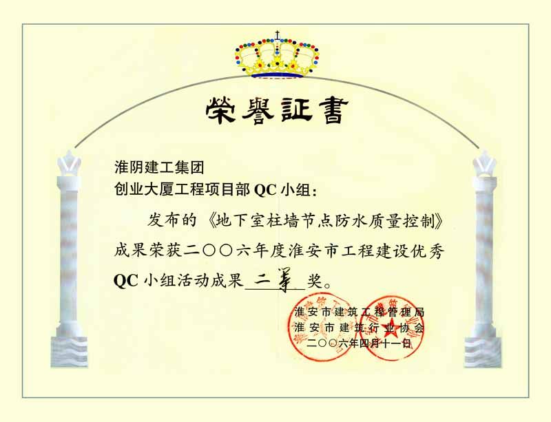 2006年QC地下室柱墙节点防水质量控制(二等奖)